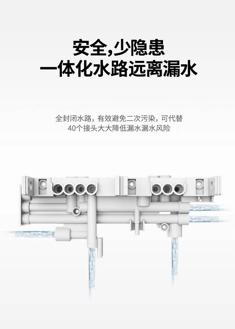 同時百吉凈水器A系列高端凈水器,采用一體水路結構,絕對不會漏水,少隱患,安全。同時全封閉水路有效避免二次污染,
